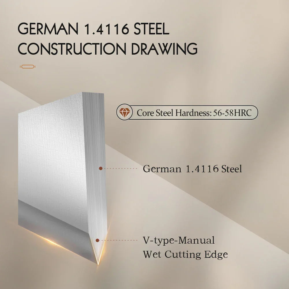 Professional Core Hardness: 56-58 HRC ensures lasting sharpness with easy maintenance